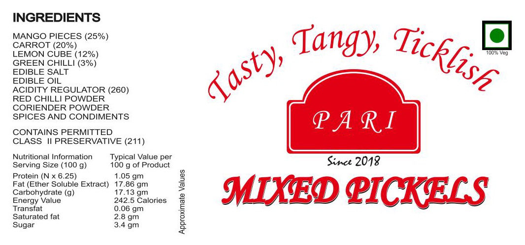 Pari pickle products are delicacies that your taste buds can't deny. Pickles have always been a staple in every Indian kitchen. Pari Pickles has the power to make your food more appetizing and delicious by its rich flavor and traditional taste. Biryani, paratha, chapati, khichdi, Rice and you name it,t without pickles the taste is missing. If you are missing the taste from your daily boring food, it's time you give yourself a tadka of spice and tanginess by ordering our pickles